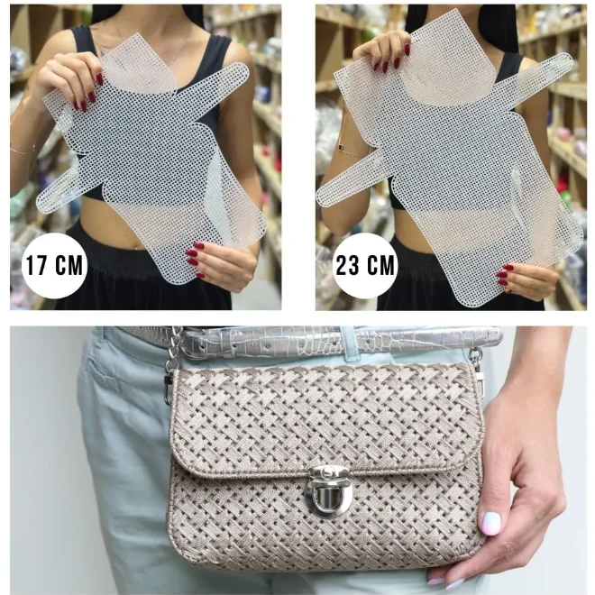 Что касается пластиковой канвы, то ее хочется выделить в отдельный подвид вышивания. Именно из нее можно создать объемные вещи, например такую сумку. https://candy-yarn.com.ua/ua/p2240930308-nabor-sumka-makrame.html