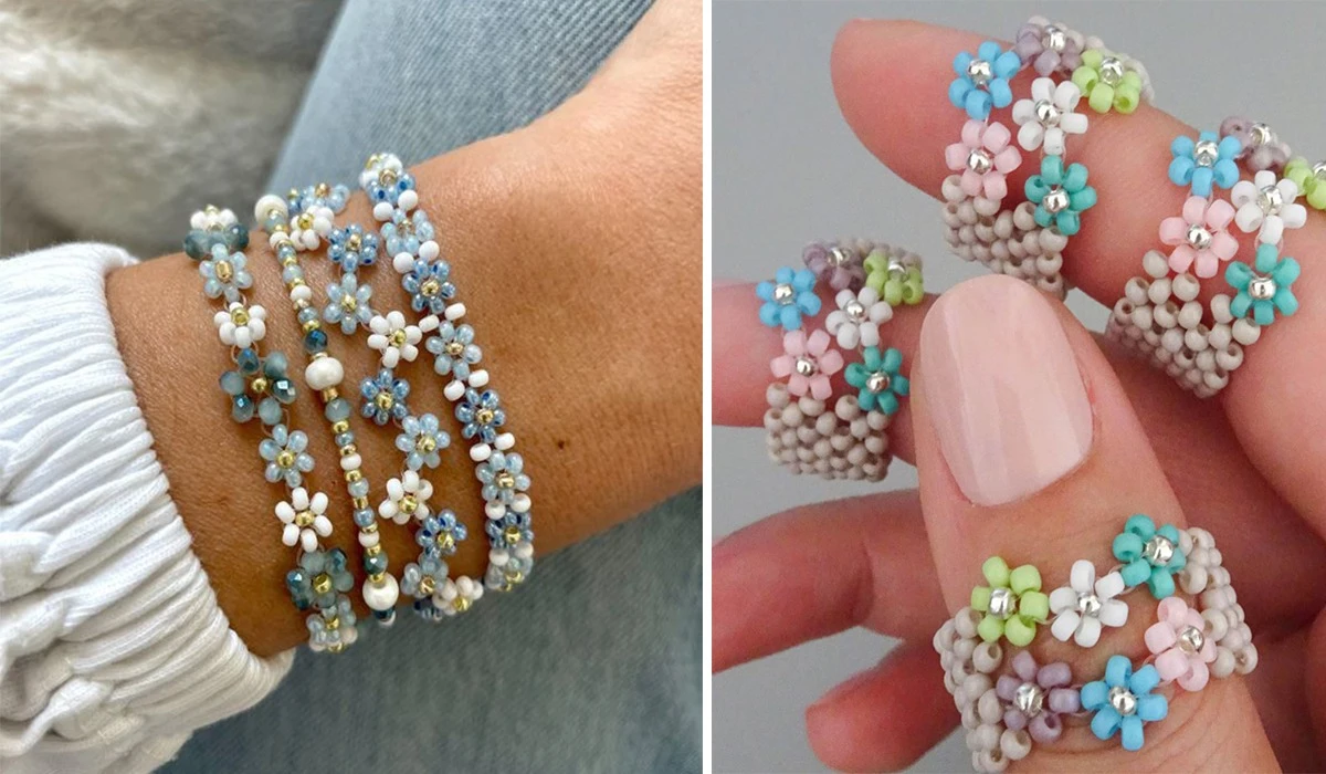 Цветочный бисер – это тренд, не сдающий позиций. Такие украшения смотрятся нежно, ручная работа читается с первого взгляда.