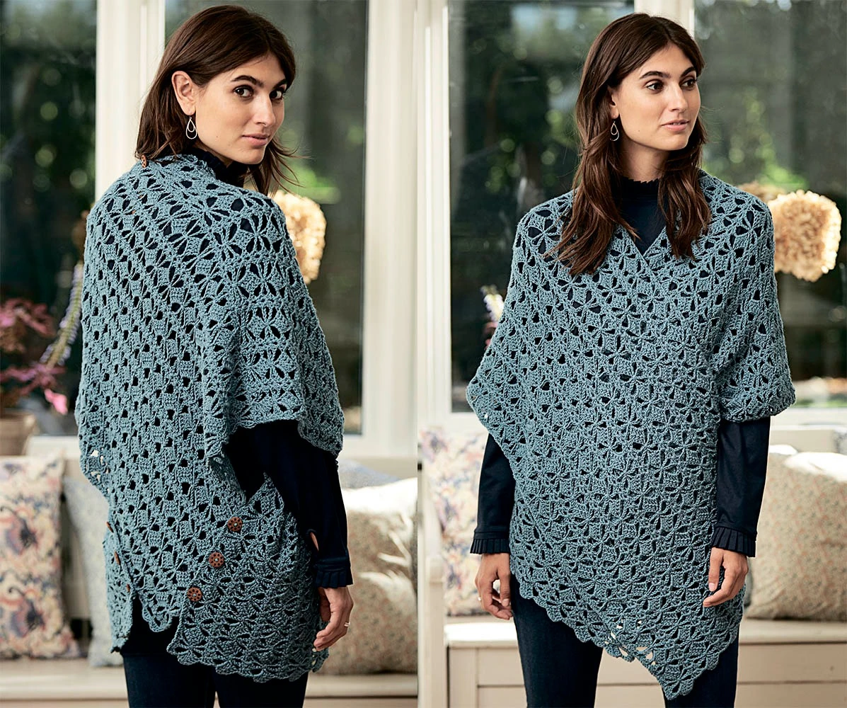 Один из самых популярных вариантов. Пуговицы и петли позволяют изменять форму изделия: