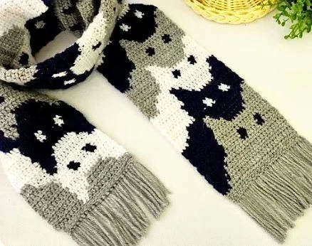 Идея для пары: сделать два шарфа в одном стиле. Здесь и сердечки можно связать и выбрать мотивы с животными.