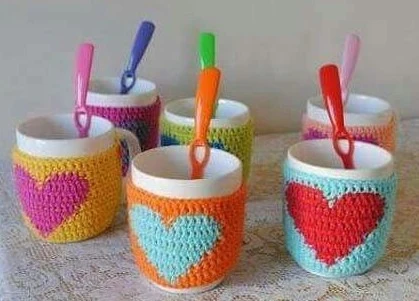 Небольшие вязаные подставки в форме сердца или круга — скорая идея подарка ко Дню влюбленных. Прекрасно смотрятся в комплекте с чашкой.