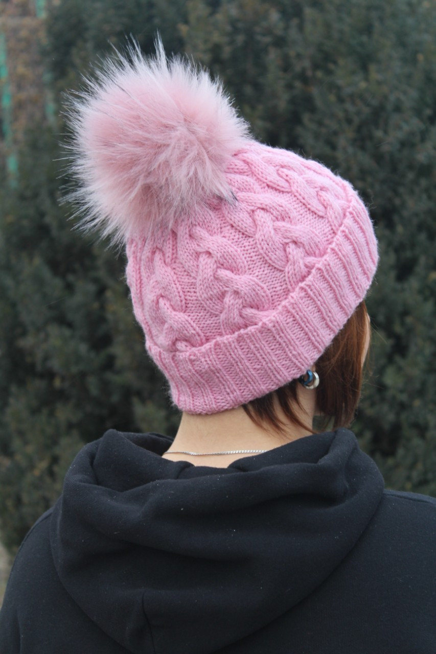 Шапка візерунок "коси" з підкладкою з флісу
