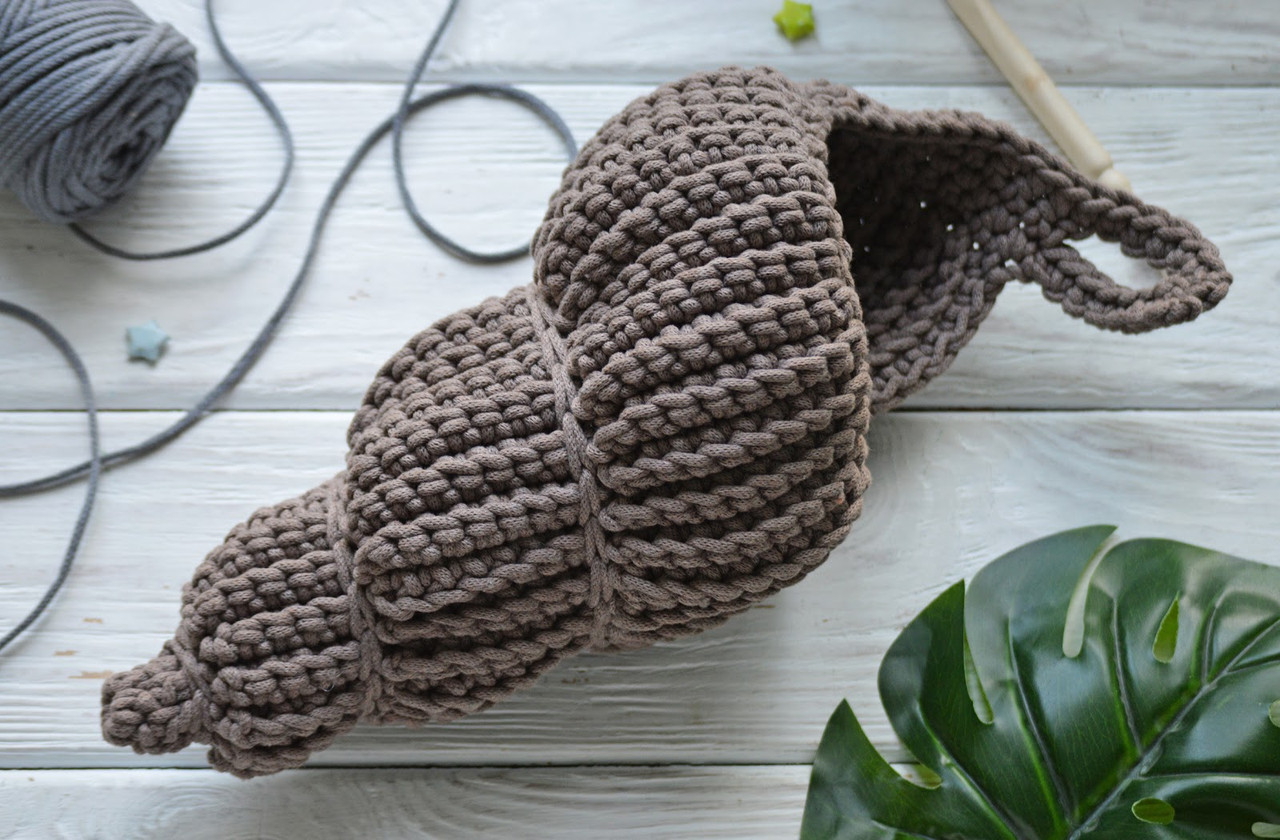 Оригінальним доповненням інтер'єру. стане в'язана по спіралі мушля. Її можна використовувати як кошик для різних дрібниць у передпокої, вітальні або ванної кімнати. Якщо зв'язати великого розміру, то можна застосувати як кошик для іграшок в дитячій або місце для зберігання клубків рукодільниці. Домашні вихованці полюблять затишний будиночок у вигляді черепашки.