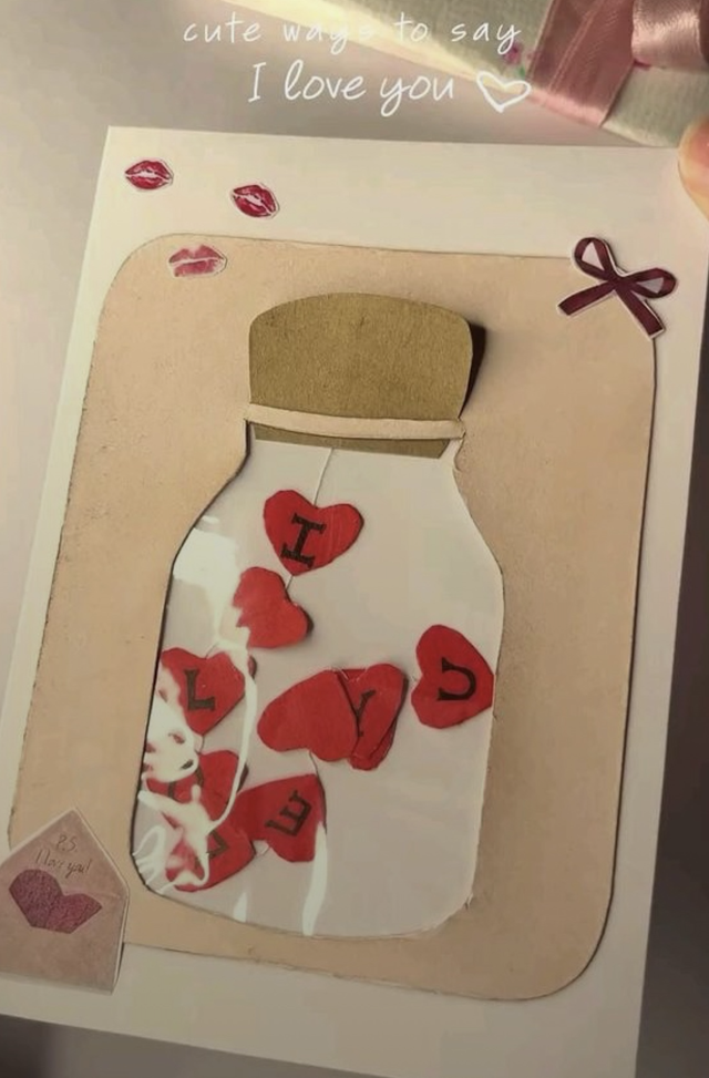 - Беремо кольоровий папір, вирізаємо серденька та пишемо на них приємні слова, або імʼя коханої людини. Серденька вирізаємо не великі, щоб вони помістилися у баночку.