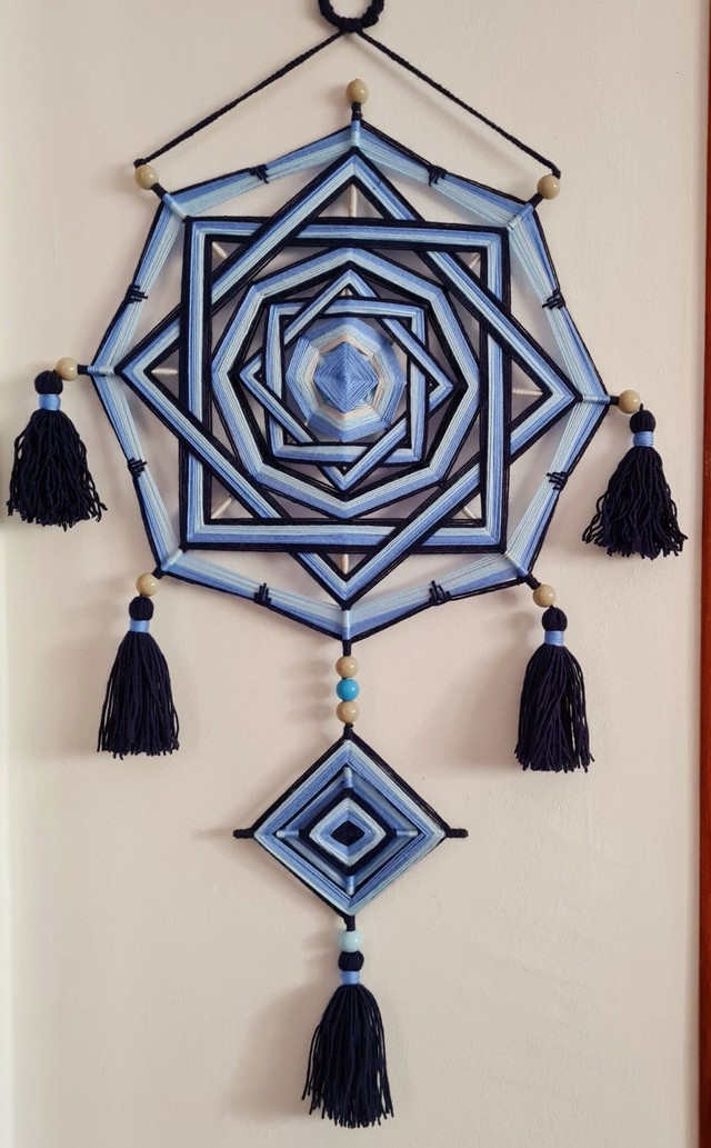 В цій статті особливу увагу приділимо мандалам з ниток. Це обʼємний візерунок, який створюється шляхом намотування ниток на основу (наприклад, палички або кільце).