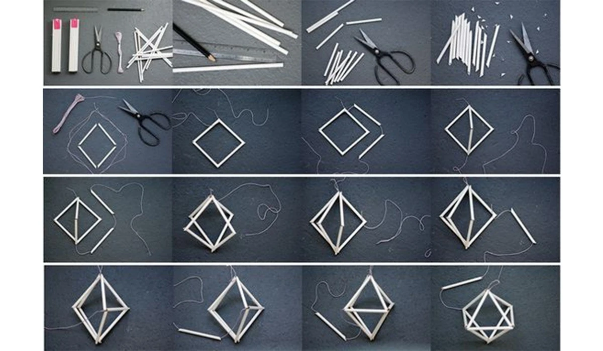 - Перед складанням розкладіть усі трубочки потрібної довжини — геометрія любить порядок