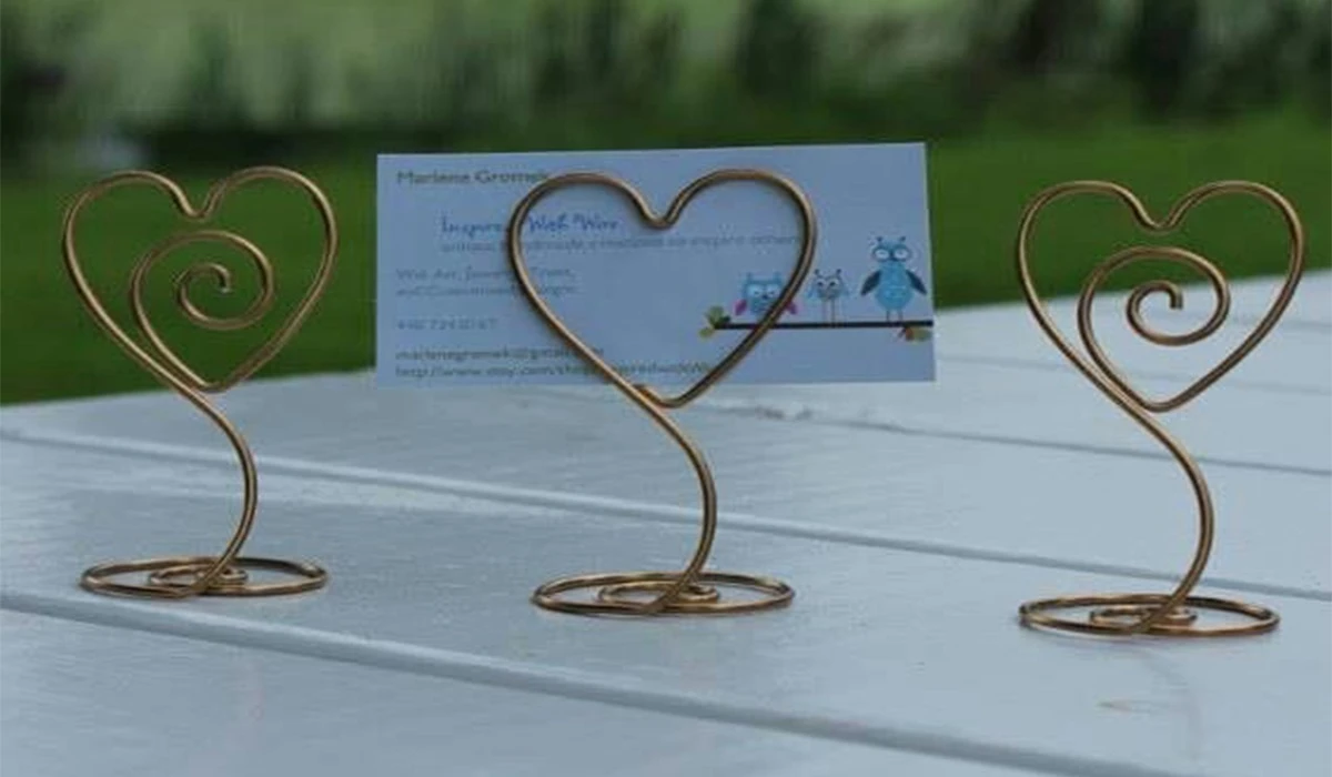 Тримачі для візиток, листівок або фото. Практичний і водночас креативний варіант. Дріт легко тримає форму, а значить, можна створювати нестандартні підставки для робочого столу.