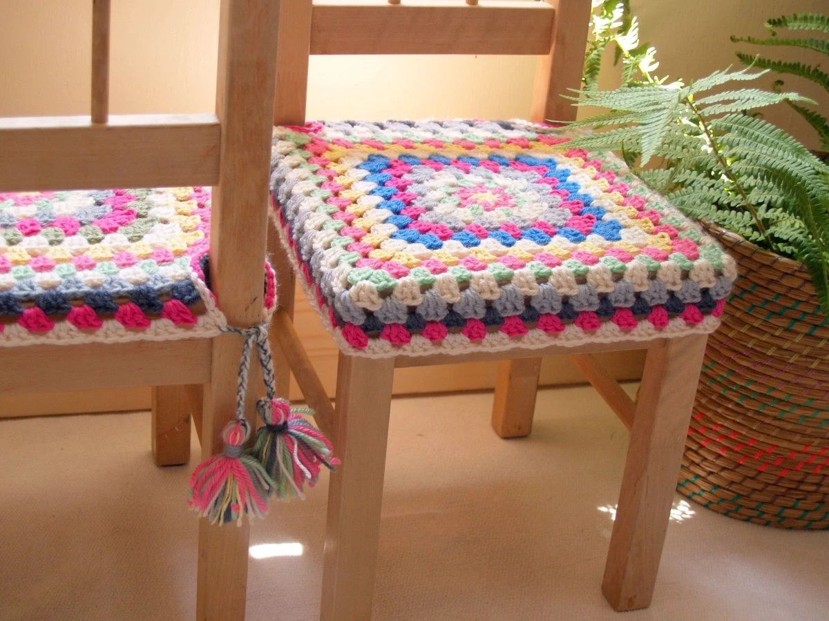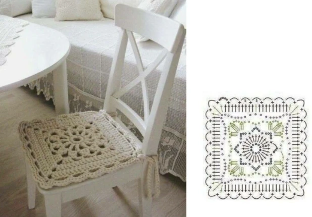 Квадратна сидушка на стілець гачком — найпопулярніший формат. Вона легко масштабується: достатньо додати кілька рядів, щоб отримати потрібний розмір.