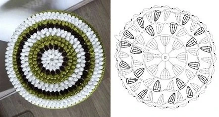 Найчастіше для таких сидушок використовують щільні візерунки зі стовпчиків без накиду або напівстовпчиків.