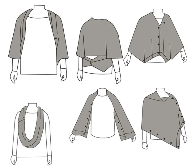 Це довге прямокутне полотно з отворами або вбудованими рукавами по краях. Його можна носити як: