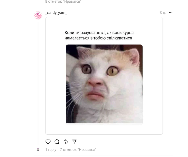 В нашому Тік-Тоці вийшла безліч смішних відео, переходь та дивись! https://www.tiktok.com/@_candy_yarn_?