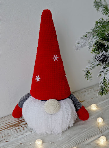 Для виготовлення такого гномика вам знадобиться: плюшева пряжа Himalaya Dolphin Baby по 1 мотку сірого та червоного кольору. До речі, колір або плюшеву пряжу іншого виробника, ви можете вибрати на свій розсуд. Для носика доцільно взяти 50-грамові мотки Premium Yarn «Baby Love», я взяла колір №333 (топлене молоко). Можна використовувати свої залишки, колір на свій розсуд. Для бороди я використовувала залишки Alize «My Baby» білого кольору, приблизно 20 г. Гачок 3,5 мм, голка, маркер, для наповнення холофайбер. Пластикове або картонне денце для стійкості.