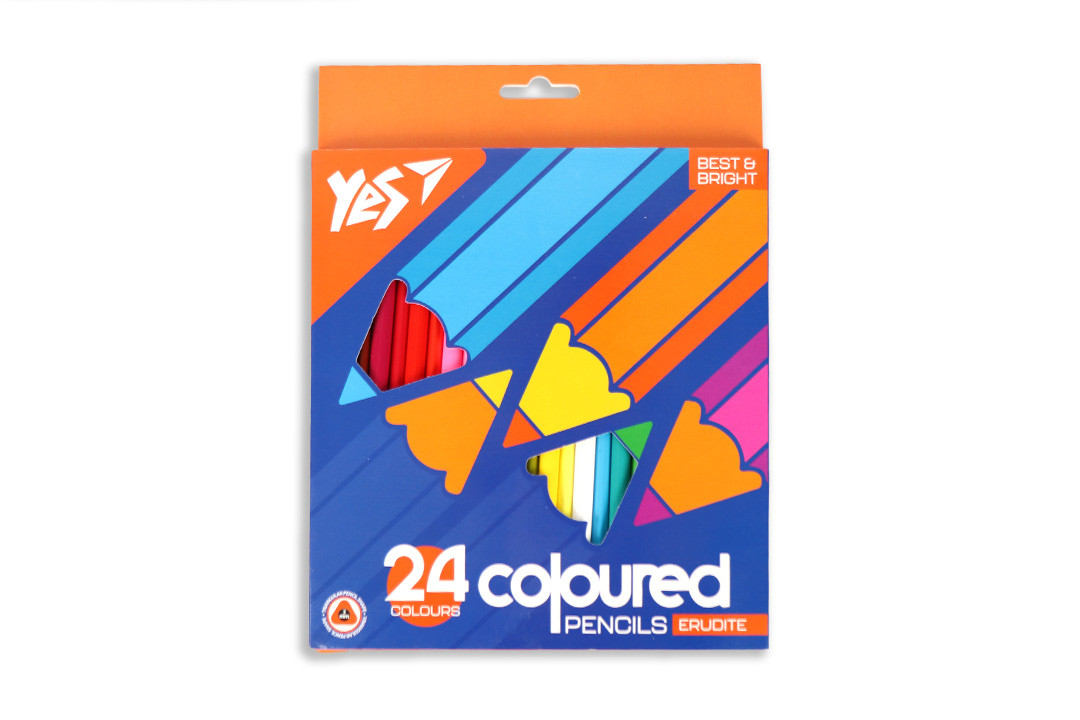 Олівці кольорові торгової марки YES на 24 кольори призначені для малювання в дитячому садку, школі, вдома. Вони чудово впораються з реалізацією найбільш сміливої дитячої фантазії. Корпус олівця тригранний, виготовлений із деревини, відповідає кольору стрижня. Не ламаються під час падіння та заточування.