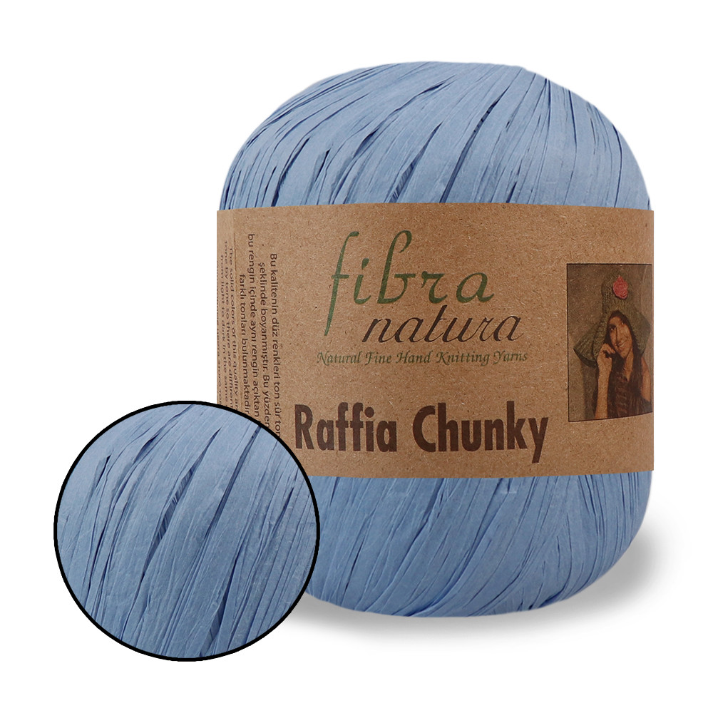 FibraNatura Raffia Chunky - 100% вискоза. Нитка представлена в широкій колірній гамі пастельних тонів. В'язувати її легко та приємно. Вироби з неї підходять для будь-якої пори року. Рафія зберігає свою форму навіть у разі впливу вологи. Це робить її ідеальним матеріалом для виробів і елементів декору, які використовуватимуться на відкритому повітрі. Підходить для виготовлення аксесуарів, як-от сумки, капелюхи, гаманці, ремені. Можна її використовувати й для предметів інтер'єру, як-от сервірувальні тарілки та доріжки. Вироби з рафії рекомендується протирати вологою мильною ганчіркою або прати вручну за температури не вище ніж 30°. Прасувати можна за низької температури через тканину.
